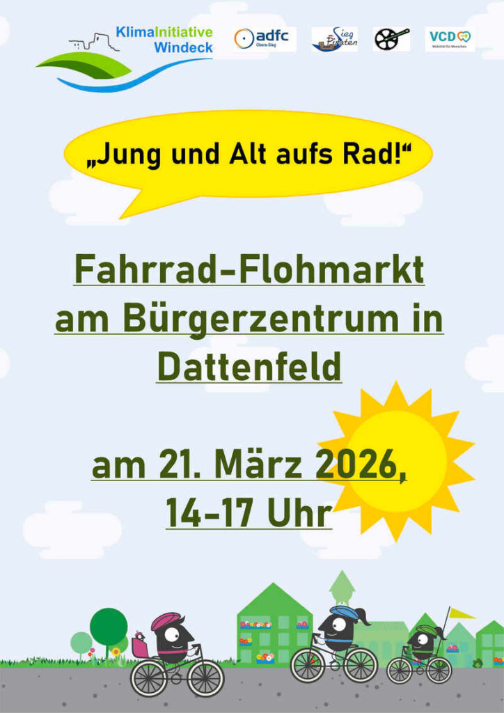 Zum Frühlingsanfang lädt die KlimaInitiative Windeck gemeinsam mit ADFC, Biketreff Leuscheid, VCD und der Klima-Kita „Siegpiraten“ alle Interessierten zur Schnäppchenjagd auf Zwei- und Dreiräder ein.